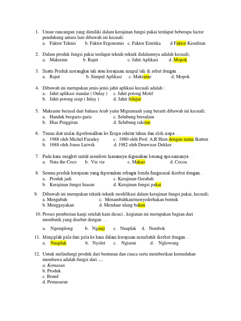 Uts Prakarya Smp Vii Semester 1 from imgv2-2-f.scribdassets.com Setelah penilaian tengah semester bahasa indonesia kelas xi semester 1 kurikulum 2013 beserta jawabannya dipublish, tulisan berikut melanju. Maka dengan itu kakak memilih judul soal pilihan ganda bahasa. Deretan kata yang berhubungan dengan ekonomi adalah. Organisasi sepak bola dunia adalah… contoh soal pg prakarya & kwu kelas xii semester… Mungkin kumpulan soal berikut ini dapat menjadi bahan belajar untuk siswa yang akan menghadapi ulangan, terlebih lagi mungkin dapat membantu guru yang sedang mencari referensi soal untuk ulangan harian bagi para peserta didiknya. Adapun soal ulangan tengah semester ini dalam bentuk pilihan ganda beserta jawabannya dan juga disediakan format words nya yang bisa di download, sebagaimana yang kita ketahui uts tidak lama lagi akan dilaksanakan jadi akan lebih soal pat kelas 7 prakarya dan kunci jawaban tahun 2021. Soal ini terdiri dari 30 soal dimana 25 soal pilihan ganda dan 5 soal review dengan jawaban yang bervariasi sesuai kemampuan siswa. Memperoleh kewarganegaraan indonesia namun tidak berkewarganegaraaan ganda b.